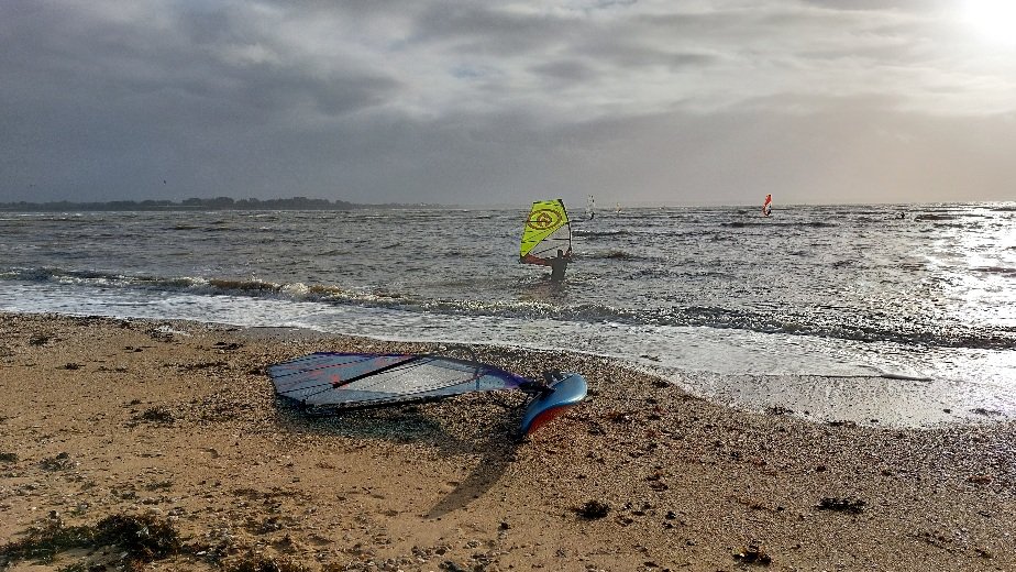 Un pont mahe en après midi, du monde a l'eau, agreable car vraiment pas froid, 4,7m2 un peu sur toile par moment