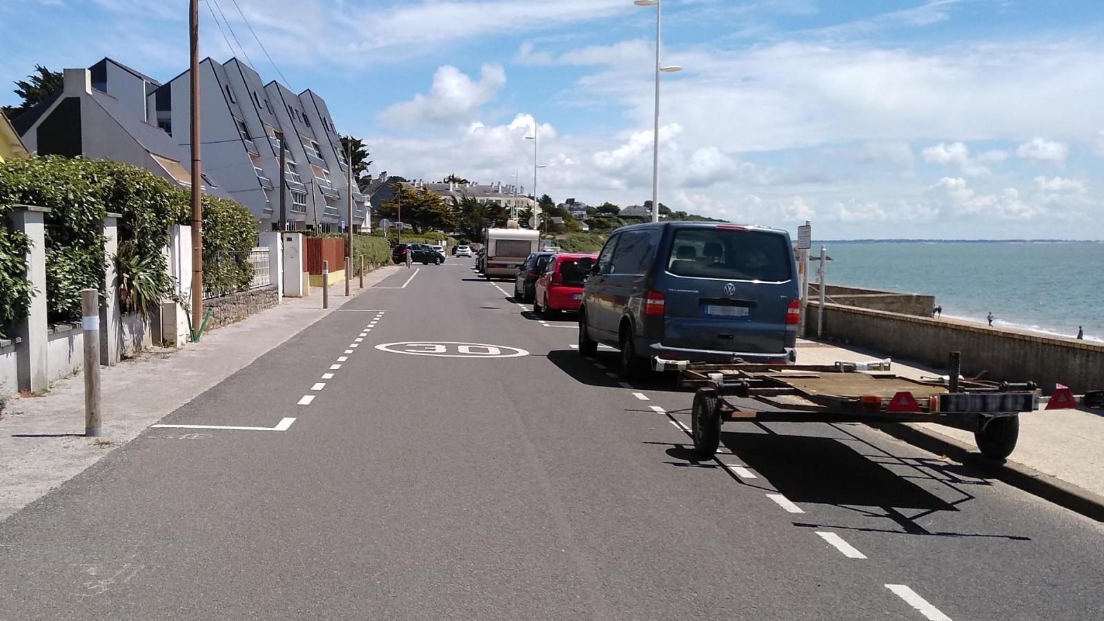 La rue d'accès à la plage étant en sens unique(NW->SE), le mieux est de rendre à son début, càd à l'adresse: 3 boulevard de l'océan Pornichet