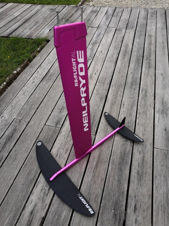 Le prix de ce foil étant dans mon budget, si j'accroche, je ferai comme tout le monde après l'apprentissage, je changerai de foil, c'est ce qu'a fait le vendeur de ce RS Flight, il a reçu son nouveau foil aujourd'hui, à ce qu'il m'a dit.