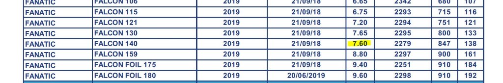 Re: Fanatic Falcon 140l 2019 - 8.0kg ?