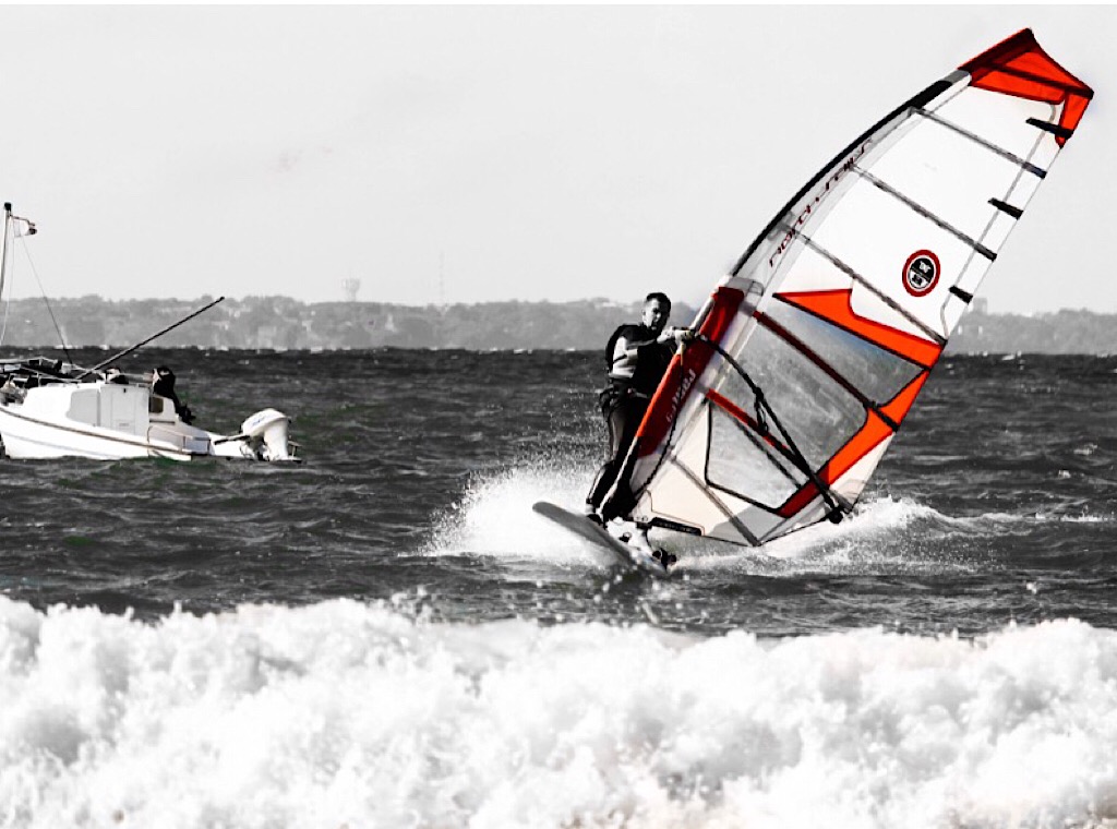 Compliqué de contrôler l'assiette avec le gros clapot . Il n'est pas nécessaire de mettre le strap arrière afin de pouvoir contrôler l'assiette de la planche dès que l'on plane.Pas simple de rester en l'air sur les premiers bords . Il faut contrôler en douceur l'assiette de la planche et surtout de pas trop border, I'l faut jouer en douceur et ne pas hésiter à choquer légèrement en vol pour bien assurer le contrôle .Le troisième bord est le bon avec de belles sensations de vol , moyennement maîtrisés et quelques bonnes gamelles .Il est impératif de mettre le casque, combinaison intégrale et bottillons car la planche peut se retourner .L'idéal aurait été un vent de 12 , 13
