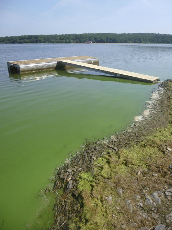 Ces dernières années les spécialistes constatent un développement particulièrement inquiétant de bloom de cyanobactéries (cf. photos ci-dessous)  avec des répercussions immédiates pour notre santé : irritations, gastro … mais aussi des complications à plus longues échéances : maladies du foie ou problèmes neurologiques (dixit un ingénieur sanitaire de l'ARS).