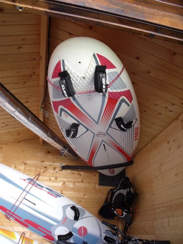 Pour ma part, j'ai fait un rack ultra light en rail d'aluminium (en U), avec une scie, un marteau et un tournevis (donc tu dois pouvoir y arriver !!). Ca supporte 3 flotteurs, 7 voiles, 4 mats, 2 wish. + 1 flotteur et un autre wish en dessous.