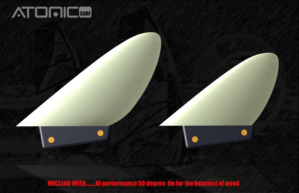 A new fin range has just completed testing at Lake George in South Australia and will be available soon. The 'Nuclear Weed" is a delta style weed fin for heavy weed and weed that grows close to the surface requiring shorterfin lengths. The prototypes have proved to be highly succesfull in testing , fast and spinout resistant in chop which has always been an issue with this style of fins in the past.