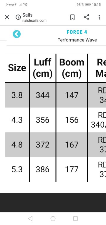 j'ai de la naish force 4 et de la sl (mode slalom) quoi qu'il en soit les voiles naish sont top, tant en qualité , qu'en rendement, filling ...