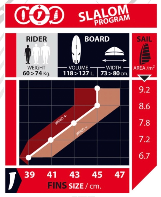 A voir sur le fin selector de select le conseil pour une planche de slalom de cette taille.